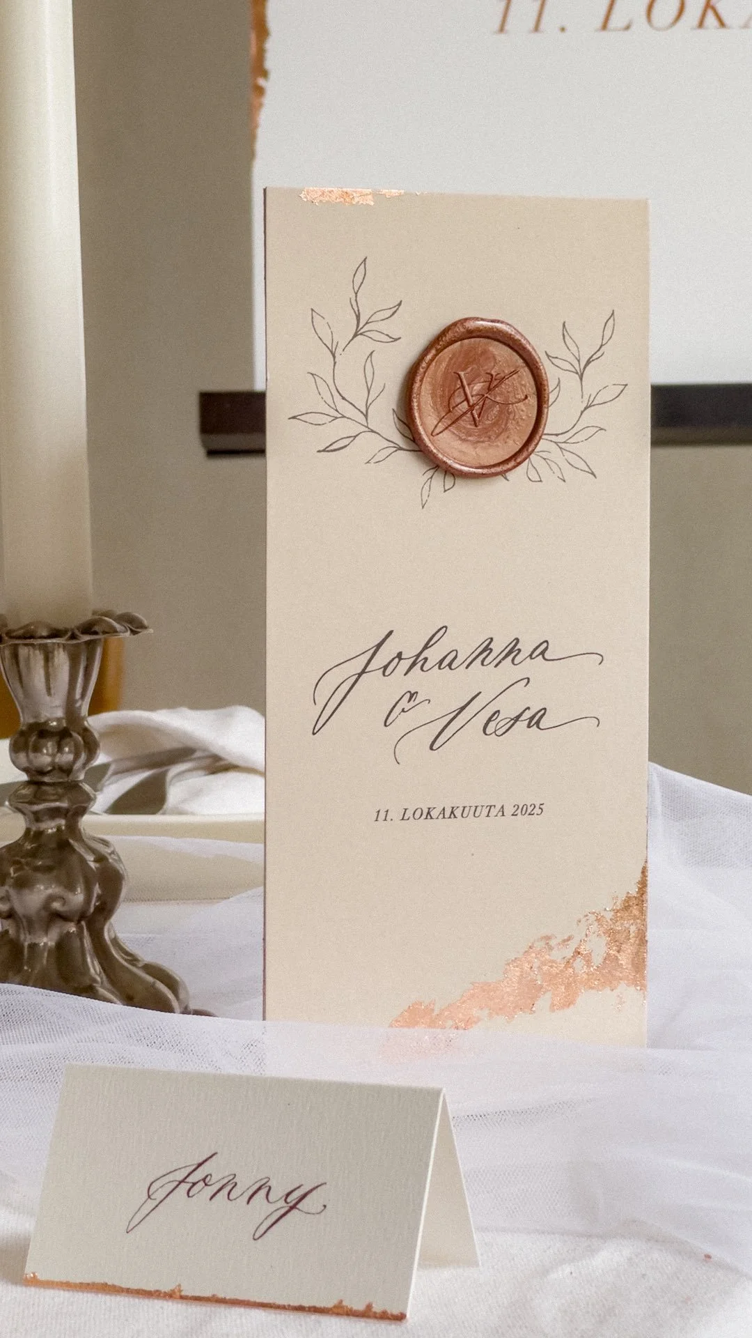 Käsinkirjoitetut yksityiskohdat, jotka on luotu juuri teitä varten.SAVE THE DATE & HÄÄKUTSUT